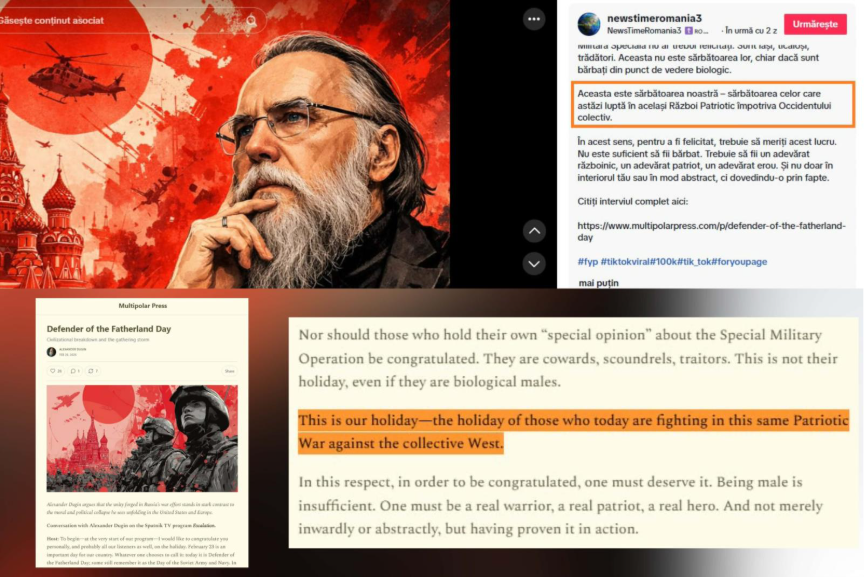 Le système fonctionne par couches : Telegram comme hub de sourcing, TikTok comme amplificateur émotionnel avec musique de l'Armée rouge soviétique. L'opération intègre même Alexander Dugin via des intermédiaires non-sanctionnés comme Multipolar Press. Ce qui frappe, c'est la systématisation industrielle : pas de journalisme original, juste une localisation massive de narratifs géopolitiques anti-occidentaux pour 3 584 abonnés Telegram et 1 865 followers TikTok. Un cas d'école de manipulation informationnelle par contournement réglementaire.