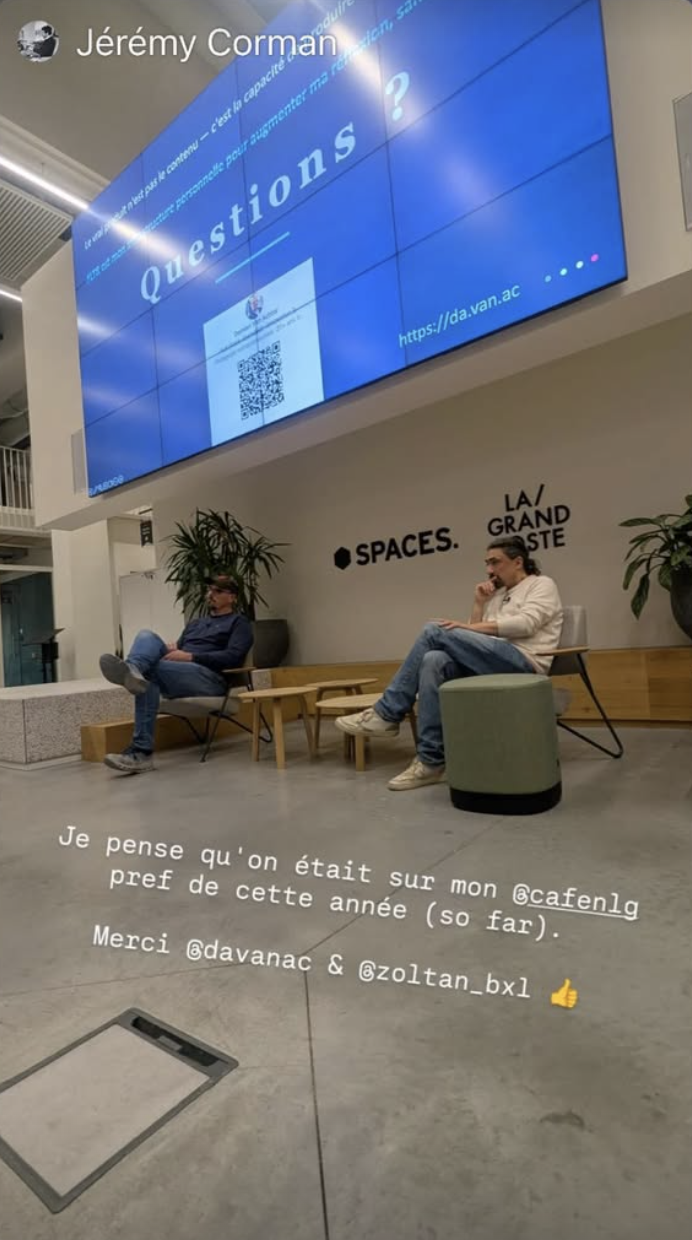 La semaine a été dense sur le terrain. Lundi 14 avril, keynote au Café Numérique de Liège sur la souveraineté numérique et le framework FLTR — merci à l'équipe pour l'accueil et aux participants pour les échanges. Le replay est en cours de montage, je le partage dès qu'il est en ligne.